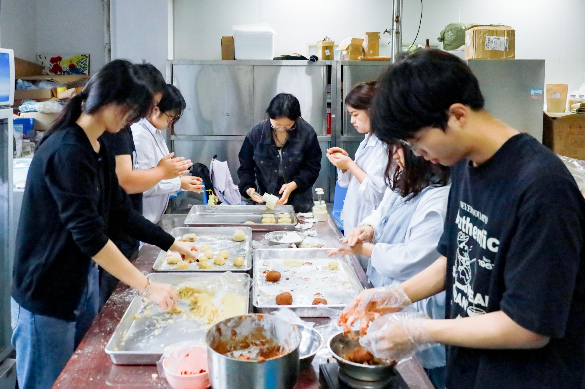 9月24日,2138CC太阳集团食品工艺研究室内弥漫着别样的温情与香气。食品科学与工程专业的师生们化身“糕点师”,在操作台上忙碌地搅面、包馅、压模、烘烤、包装……亲手为正在军训的2025级新生准备着专属他们的舌尖上的“团圆”。